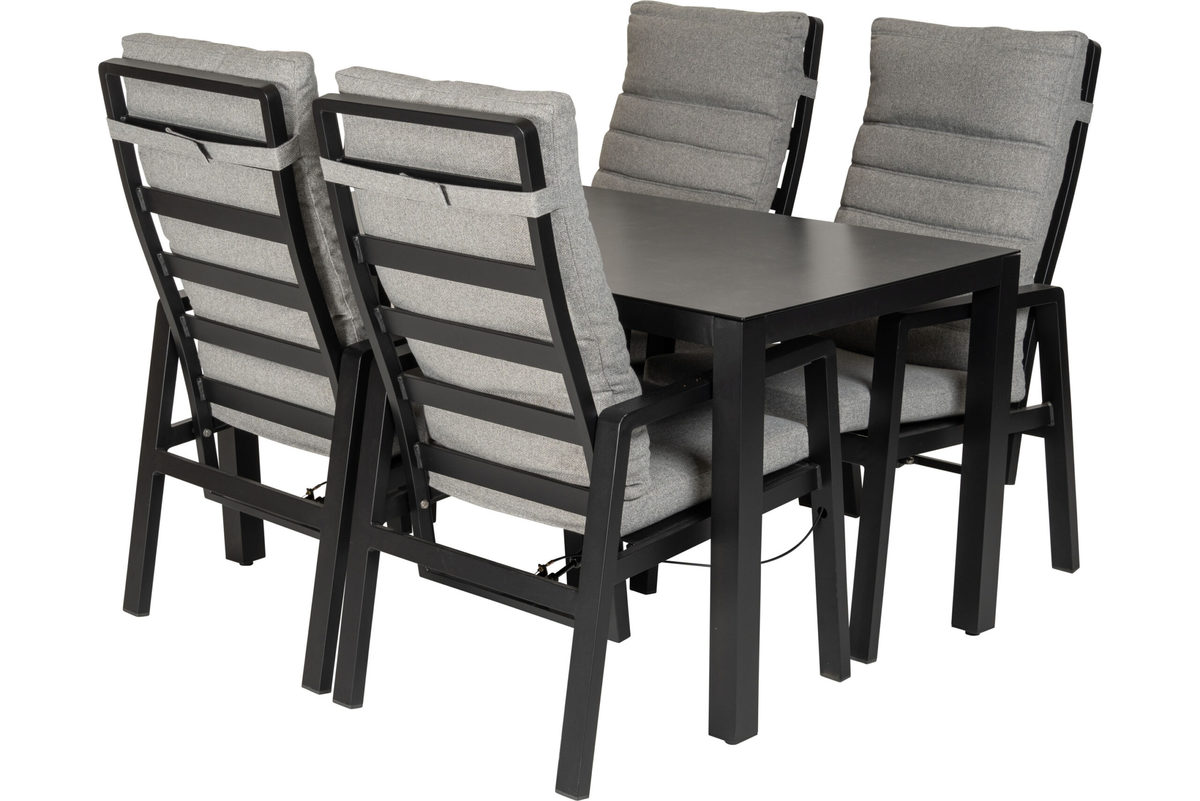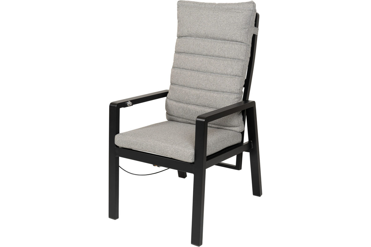 Spisestol med reclinerfunksjon i sortlakkert aluminium.
