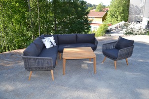 Montana lounge Hjørnesofa m/bord 90x90 cm Teak/Rope..