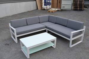 Ibiza Hjørnesofa m/bord Hvit aluminium/grått..