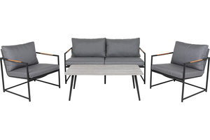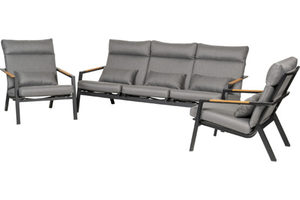 Delrey Sofagruppe 3+1+1 Sort Alu/teak armlene. Stoff..
