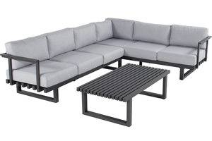 SALINA HJØRNESOFA, STOL OG REGULERBART BORD sort alu/mellom grå puter