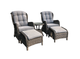 Driftwood Rio regulerbart sett. 2 stoler med skammel og 1..