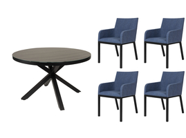 PAKKEPRIS DERBY SETT BORD Ø 120 CM + 4 STOLER BLÅ