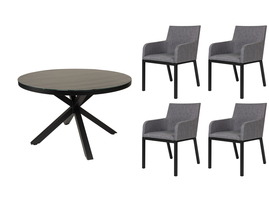 PAKKEPRIS DERBY SETT BORD Ø 120 CM + 4 STOLER GRÅ