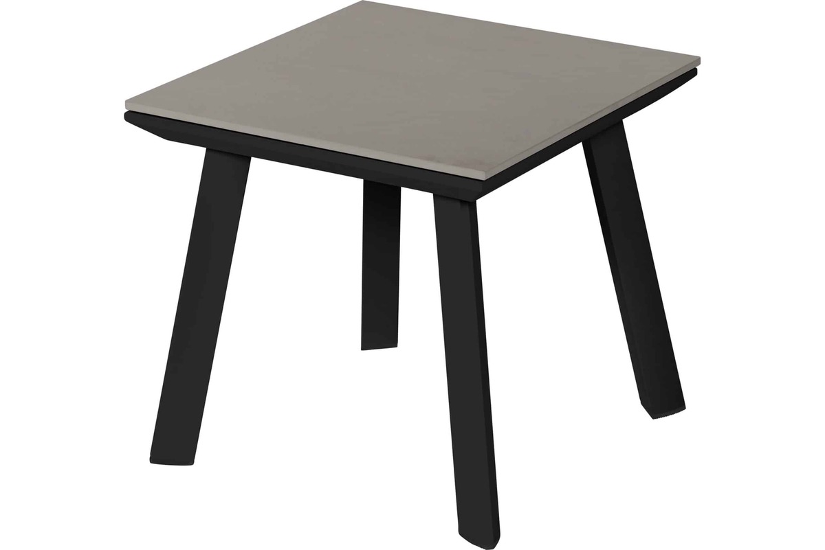 Den pulverlakkerte aluminiumsrammen er sort med skråstilte, kantede profiler.