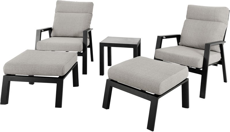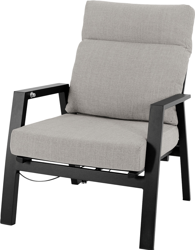 Produsert i sort aluminium med komfortable grå puter i Olefin.